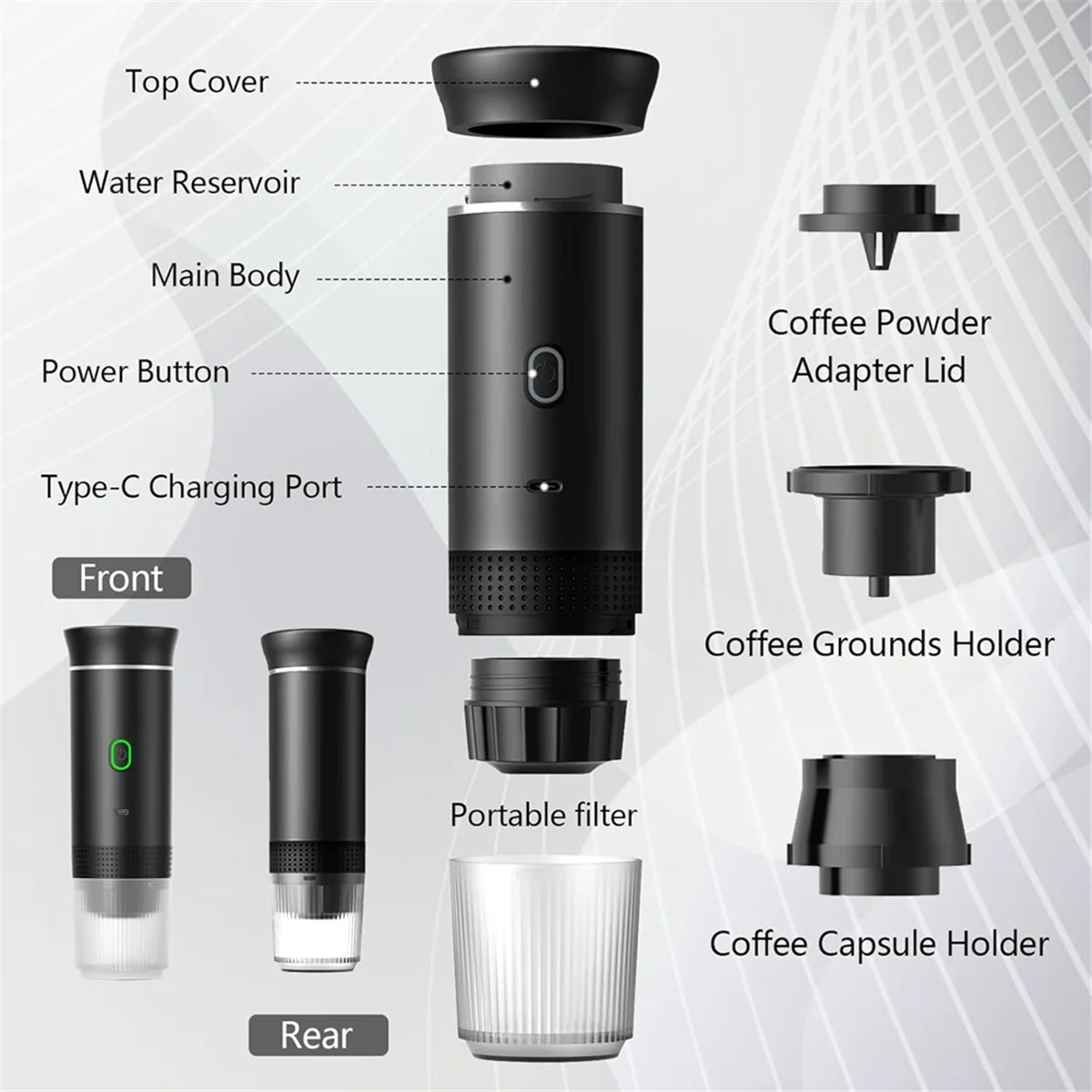 B99A-Wireless Electric Portable Espresso Coffee Machine Portable Coffee Maker 3-In-1 Capsule Powder Portable Coffee Maker For Tr